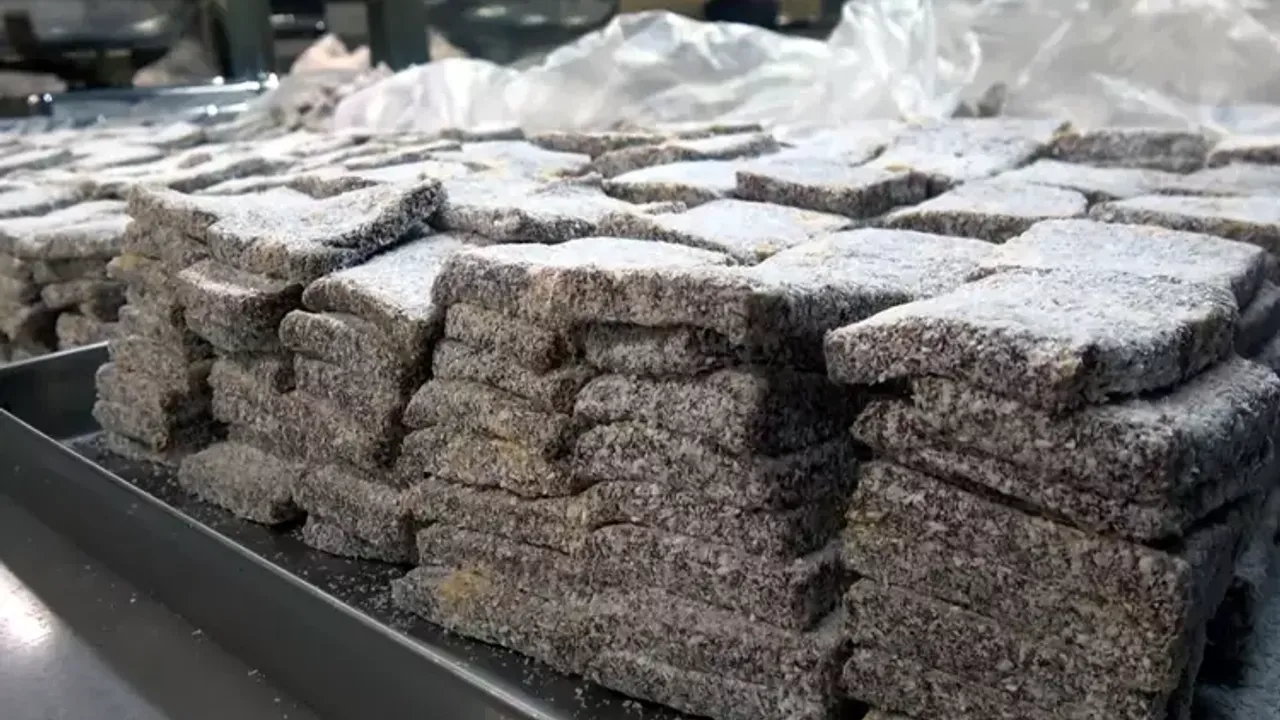 Dinlendirilen cezerye, tepsiye dökülüp düzleştirilir ve kesildikten sonra bolca Hindistan ceviziyle kaplanarak servise hazır hale getirilir.