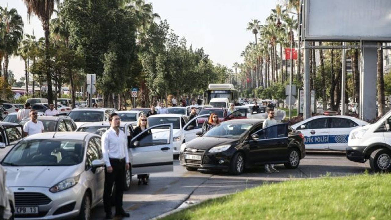 Mersin'de saatler 9'u 5 geçe, araç ve insan trafiği durdu.