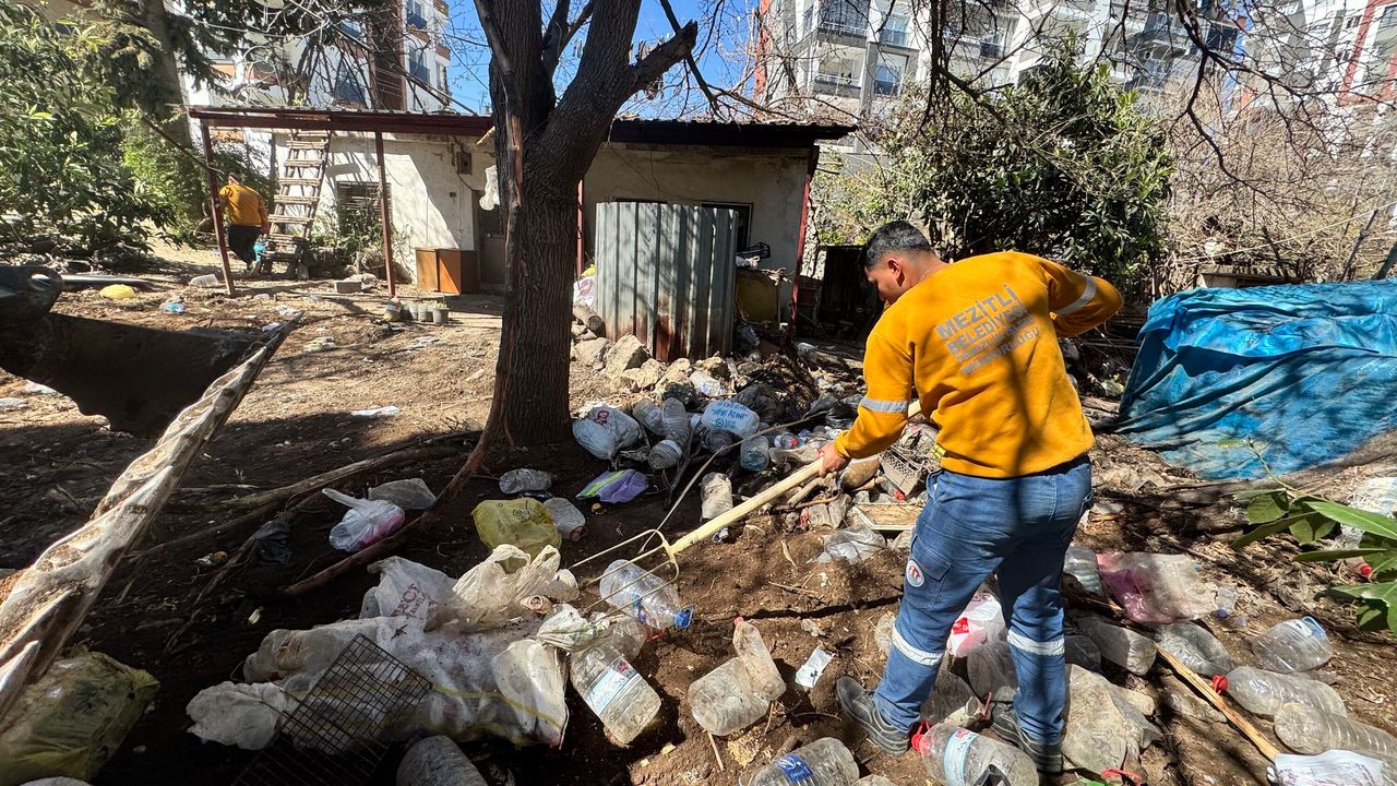 Mezitli İlçe Emniyet Müdürlüğü’nün nezaretinde yürütülen çalışmada, Mezitli Belediyesi Zabıta Müdürlüğü ve Temizlik İşleri Müdürlüğü ekipleri uzun süredir evde biriken atıkları tahliye etti. Çalışmalar sırasında çürümüş ev eşyaları, plastik atıklar, pet şişeler ve kullanım ömrünü tamamlamış çok sayıda eşya ekipler tarafından kamyonlara yüklendi.