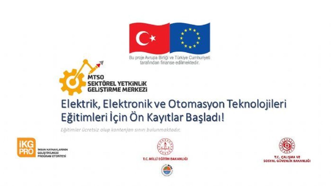 MTSO Sektörel Yetkinlik Geliştirme Merkezi'nde, Mersin İlinde İş Dünyasının Değişen İhtiyaçlarının Mesleki Eğitimin Entegrasyonu ile Karşılanması Projesi kapsamında elektrik, elektronik ve endüstriyel otomasyon alanında meslek öğretmenleri ve özel sektörün uygulamalı eğitim ihtiyacını karşılamaya yönelik, söz konusu iş kollarında çalışan teknik personele yönelik eğitimler verilecek.