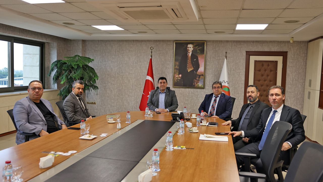 Tarım ve Orman Bakanlığı Proje Takip Ofisi Başmüfettişi Tuğrul Sayın, Proje Uzmanları Deniz Saklavcı ve Yusuf Serhad Çakmak, Mersin İl Tarım ve Orman Müdürü Erdem Karadağ ile birlikte Mersin Ticaret ve Sanayi Odası’nı (MTSO) ziyaret etti. Heyet, MTSO Yönetim Kurulu Başkan Yardımcısı Cem Bucuge ve Meclis Üyesi İbrahim Arıcı ile bir araya gelerek narenciye sektöründe yaşanan sorunları değerlendirdi.