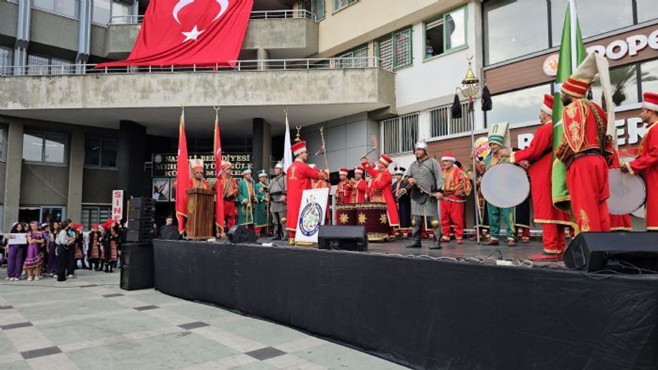 Sabah saat 08.00'de 5 adet top atışı ile başlayan, İstasyon Meydanındaki Atatürk heykeline çelenklerin sunulması ve kortej yürüyüşü ile süren etkinliklere Nazilli Kaymakamı Sedat Sırrı Arısoy başta olmak üzere Nazilli Belediye Başkanı Kürşat Engin Özcan, Cumhuriyet Başsavcısı Murat Dilsiz, Adli Yargı İlk Derece Mahkemesi Adalet Komisyonu Başkanı Menduh Yalvaç, Nazilli Baro Temsilcisi Av. Emel Şahin, ilçe protokol üyeleri, Gürcistan, Makedonya, Kuzey Kıbrıs Türk Cumhuriyeti, Mısır, Acara Özerk Cumhuriyeti ve Hindistan'dan gelen halk dansları toplulukları ve yerli ekipler katıldı.