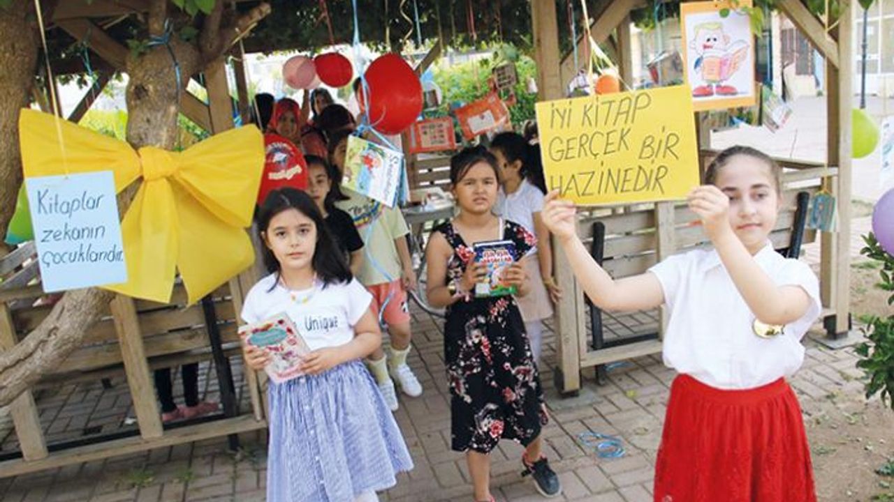 Erdemli ilçesine bağlı Merkez Mahallesi'nde bulunan Sultan Akın İlkokulu öğrencileri, öğretmen ve idarecilerin desteğiyle 'Ağaçlar kitap açtı' etkinliği düzenledi. Okulun yanında yer alan parktaki tüm ağaçlar ile kamelyalara kitaplar asan öğrenciler daha sonra velilerin de katılımı ile okuma etkinliği gerçekleştirdi. Çocuklar etkinlikte hem eğlendi hem de kitap okuyarak güzel bir gün geçirdi. Etkinliğe Erdemli Belediye Başkanı Mükerrem Tollu da katılarak diğer protokol üyeler ile kurdele kesip açılış yaptı. Yapılan çalışma ile ilgili bilgi veren Erdemli Milli Eğitim Müdür Yusuf Açıkyörük, "Bakanlığımızın başlatmış olduğu kütüphanesiz okul kalmasın projesi çerçevesinde öğrencilerimizde okuma alışkanlığını arttırmak, onlara okumayı sevdirmek için farklı etkinlikler yapıyoruz. Hem okuma alışkanlığı kazanılmasıyla ilgili çocuklara bir etkinlik yapmak, hem velilerde okuma alışkanlığına dikkat çekmek hem de kütüphanelere evde okumadığımız, okunmuş evde duran kitaplarımızı kütüphanelerimize kazandırmak istedik. Burada sizlerde görüyorsunuz ağaçlarda kitaplar asılı, o kitapları alıp okuyabilecekler. Biz bunu biraz daha geliştirip burası velilerimizin bekleme alanı olduğu için velilerinde okumasını sağlamayı hedefliyoruz. Velilerimizden okullarımıza kitap desteği bekliyoruz" dedi. Bin 200 öğrencileri olduğunu belirten Okul Müdür Fatih Öngeli ise, "Bin 200 öğrencimizle birlikte bu güzel etkinliği gerçekleştirdik. Okumaya dikkat çekmek, okul kütüphanelerini zenginleştirmek ve toplumda okumanın güzel olduğunu göstermek amacıyla bu etkinliğimiz arkadaşlarımızla yaptık" diye konuştu. Çok güzel bir etkinlik yaptıklarını belirten öğrenciler de mutluluklarını aktarırken, kitap okumayı sevdiklerini ve herkesin okuması gerektiğini kaydetti. (İHA)