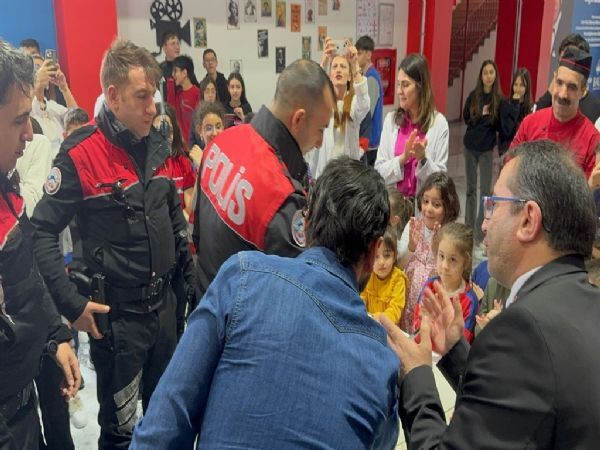 Polisler öğrencilerle birlikte kestikleri pastanın ardından tekrar görev yerlerine döndü.