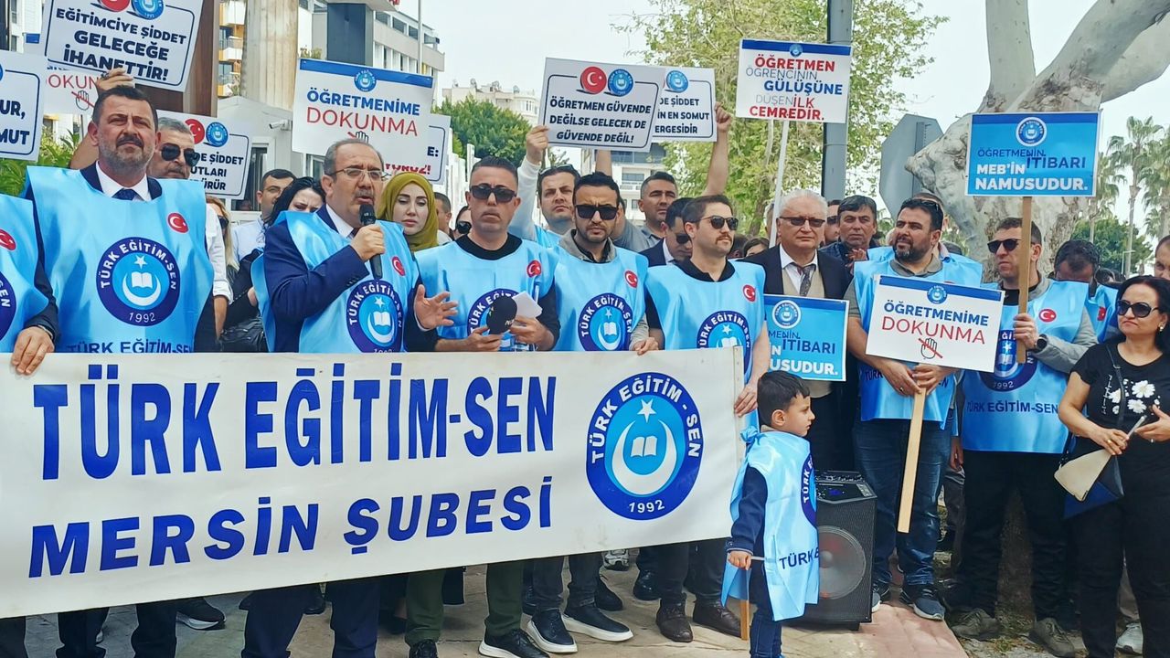 Mersin’de, Türkiye Kamu-Sen’e bağlı Türk Eğitim-Sen Mersin 1 Nolu Şubesi üyeleri, Şanlıurfa’da yaşanan saldırı olayına tepki göstermek amacıyla İl Milli Eğitim Müdürlüğü önünde bir araya geldi. Sendika Başkanı Metin Ercan, eğitim kurumlarında artan şiddet olaylarına dikkat çekerek acil önlem çağrısında bulundu.