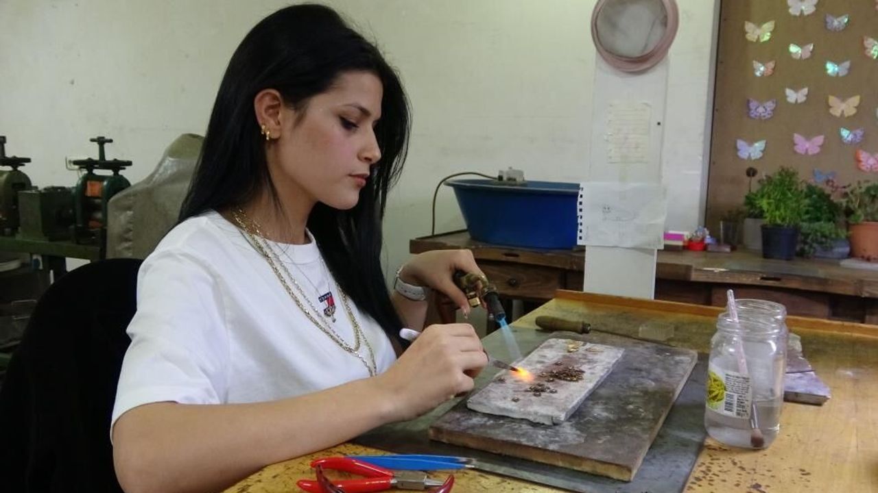 Kuyumculuğa başladığında hiçbir şey bilmediğini belirten Ülger, "Bir arkadaşımın yönlendirmesiyle başladım. Kuyumculukla ilgili hiçbir şey bilmiyordum. İlk başta çok zorlandım. Elim kesiliyordu, yaralar oluyordu ama zamanla alıştım. İnsanlar özellikle bu ojeli tırnaklarla nasıl yaptığımı çok merak ediyor. 'Bu ojeli tırnaklarla yapamazsın' diyen çok oldu ama alışınca gayet rahat bir şekilde yapılabiliyor" dedi. Kuyumculuk sektöründe kadınların oldukça az olduğunu dile getiren Ülger, "Bu işi yapan çok fazla kadın yok. İnsanlara zor geliyor. Ama insanın isteyip de yapamayacağı hiçbir şey yok. İstedim ve yaptım" diye konuştu. Atölyede genellikle özel siparişler üzerine çalıştıklarını anlatan Ülger, altın işlemeciliğinin oldukça zahmetli bir süreç olduğunu ifade ederek, "İşimiz altın eritmeyle başlıyor. Çok yüksek sıcaklıkta çalışıyoruz. Altını çektikten sonra kezzap süreci var. İki gün bekletiyoruz. Sonra kaynatma, şekil verme, parlatma ve cilalama işlemleri yapılıyor. En sonunda takı hazır hale geliyor" ifadelerini kullandı. Henüz 21 yaşında ustalığa ulaşmanın kendisi için büyük bir gurur olduğunu söyleyen Ülger, ileride kendi atölyesini açmayı hedeflediğini belirterek, "Kadınların yapamaz denildiği bir meslek olduğu için daha fazla kadının bu işe yönelmesini istiyorum" dedi.