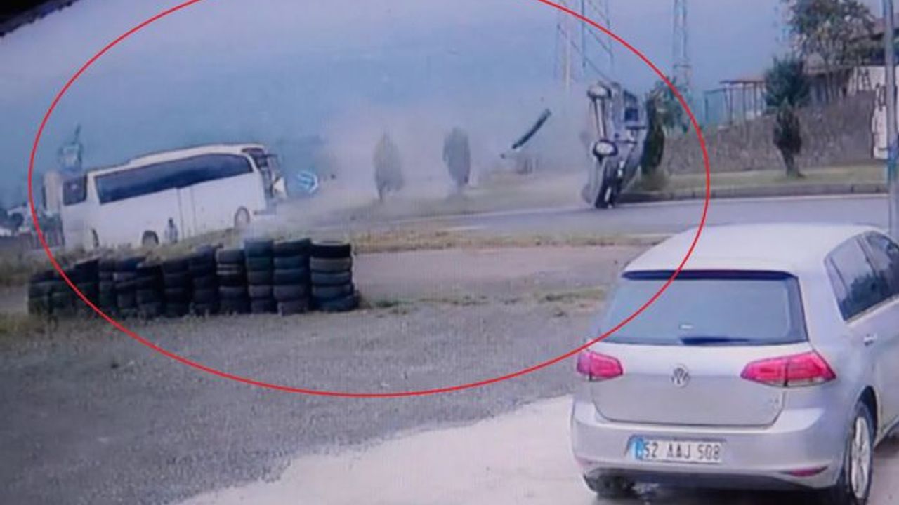 Yaşanan kaza anı ise bir iş yerinin güvenlik kamerasına saniye saniye yansıdı.