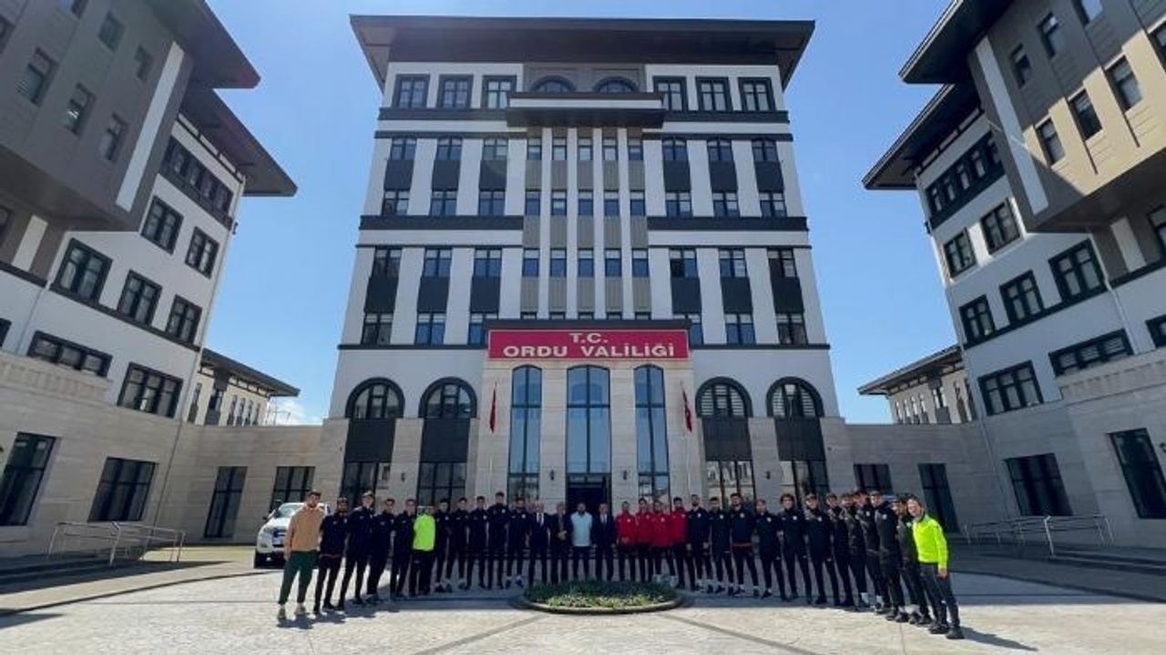 4 yıl aradan sonra tekrar yeşil sahalara dönen 188 sicil nolu Orduspor takımı, kendilerine hayat veren Vali Tuncay Sonel'e teşekkür ziyaretinde bulundu. Orduspor Kayyum Heyeti Başkanı Hamdi Işık, Genel Koordinatör Cihangir Güner, Teknik Sorumlu Emir Altun ve futbolculardan oluşan Orduspor takımı, mor-beyazlı kulübe sahip çıkmasından dolayı Vali Tuncay Sonel'e teşekkür ettiler.