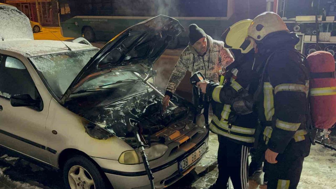 Edinilen bilgiye göre, ilçeye bağlı Fevzi Çakmak Mahallesi Billur Caddesi’nde meydana gelen olayda, Kadir Silim 38 BB 536 plakalı otomobilini iddiaya göre oto tamircisinde yaptırdıktan sonra evine getirdi. Biraz süre geçtikten sonra otomobilini ısıtmak için marşa basılan Silim’in otomobili motor kısmından alev aldı. İhbar üzerine bölgeye polis ve itfaiye ekipleri sevk edildi. Polis ekipleri çevrede güvenlik önlemi alırken, itfaiye ekipleri de yangına müdahale etti. Otomobilde çıkan yangın ekipler tarafından büyümeden söndürülürken, otomobilde maddi hasar oluştu. Olayla ilgili soruşturma başlatıldı.