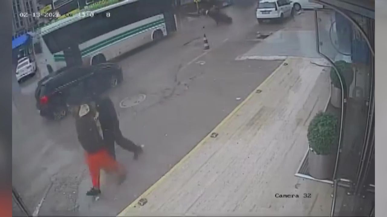 Olay, Seyhan ilçesine bağlı İnönü Caddesi'nde meydana geldi. Etkili olan yağış sonrası yolda oluşan su birikintisinin altında kalan çukuru fark etmeyen motosiklet sürücüsü, bir anda dengesini kaybederek yere savruldu. O sırada seyir halinde olan otobüs, motosiklete çarpmadan son anda durabildi. Sürücü, saniyelerle otobüsün altında kalmaktan kurtuldu. O anlar güvenlik kamerasına yansıdı. Kazayı gören vatandaşlar yardıma koşarken, olay yerine sağlık ekipleri sevk edildi. Motosikletlinin sağlık durumunun iyi olduğu öğrenildi.