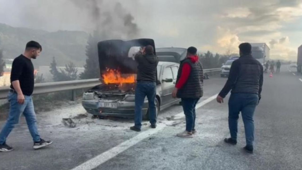 Otomobilde çıkan yangını vatandaşlar ve jandarma söndürdü