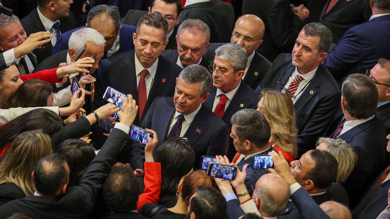 CHP Genel Başkanı Özgür Özel, Türkiye Büyük Millet Meclisi'nin 106'ncı açılış yıldönümü dolayısıyla TBMM'de düzenlenen resepsiyona katıldı. Burada basın mensuplarının sorularını yanıtlayan Özel, resepsiyona geçen yıl katılmadığının hatırlatılması üzerine, "Biz burada zaten ev sahibiyiz. Geçen yıl '19 Mart darbesi'nin hemen ardındaydı, ben İstanbul’daydım. O yüzden burada yoktuk. Oysa biz burada ev sahibiyiz. Meclis resepsiyonuna katılmamak gibi bir durum olmaz" ifadelerini kullandı.