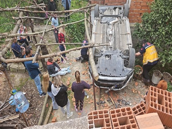 Olay, saat 15.30 sıralarında İncivez Mahallesi Kamelya Sokak'ta meydana geldi. Kumsal G., idaresindeki 67 SK 953 plakalı otomobilini evinin önünde park etmek isterken kontrolü kaybetti. Otomobil 2 metre yüksekten bahçeye düştü. Otomobil ters dönerken kazanın sesini duyanlar panik yaşadı. İhbar üzerine bölgeye polis, sağlık ve itfaiye ekipleri sevk edildi. Yapılan kontrolde sürücü Kumsal G., elinden yaralandığı belirlendi. Ambulansta müdahale edilen sürücü hastaneye gitmedi.