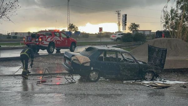 İtfaiye ekiplerinin müdahalesi sonucunda söndürülen otomobil, tamamen yanarak kullanılamaz hale geldi.