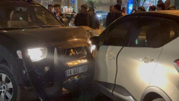 Edinilen bilgiye göre, Metin A. yönetimindeki 14 AAZ 101 plakalı pikap, karşı yönden gelen Murat K. idaresindeki 14 ACY 495 plakalı otomobil ile kafa kafaya çarpıştı. Çarpışmanın etkisiyle yolda savrulan araçlar, 74 DD 225 plakalı park halindeki otomobil de hasar verdi. Kazada Murat K. yönetimindeki otomobilde bulunan 3 kişi yaralandı. Durum 112 Acil Çağrı Merkezi'ne bildirildi. İhbar üzerine bölgeye sağlık ve polis ekipleri sevk edildi. Kazada yaralanan vatandaşlar ilk müdahalenin ardından sağlık ekipleri tarafından hastaneye kaldırıldı. Kazayla ilgili inceleme başlatıldı.