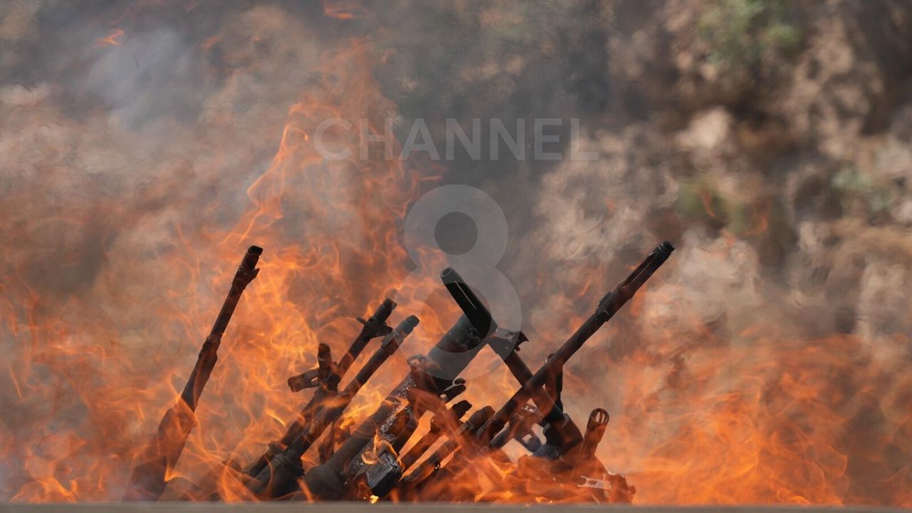 Silahların yakıldığı bölge, güvenlik açısından sıkı şekilde korundu. Olası tehditlere karşı çevrede zırhlı birlikler konuşlandırıldı ve bir helikopter, alan üzerinde sürekli devriye uçuşu yaptı.