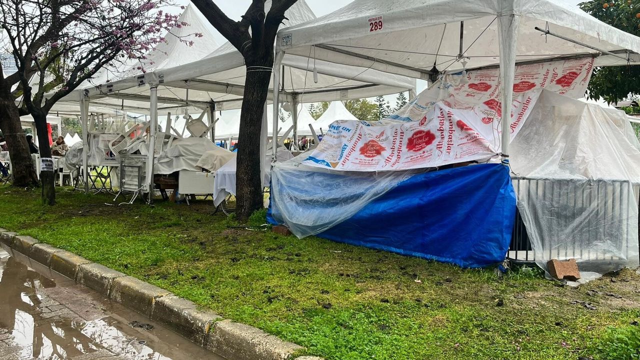 Ancak kentte gün boyu süren sağanak yağmur nedeniyle işletmelerin stantları zarar gördü.