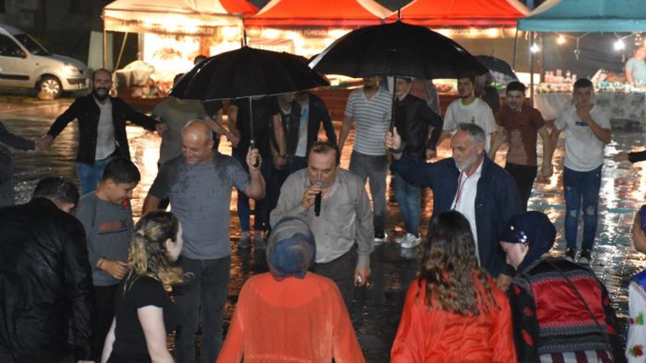 Hendek Karadeniz Havalisi Kültür, Yardımlaşma ve Dayanışma Derneği tarafından düzenlenen 2. Karadeniz Kültür ve Sanat Festivali'nde yağmura yakalanan vatandaşlar, yağışa aldırış etmeden eğlenmeye devam etti. Vatandaşların engel tanımadığı horon sevgisinde onlarca kişi el ele tutuşarak müzik eşliğinde oynadı. Yağmur altında horon oynanan anlar renkli görüntülere sahne oldu.