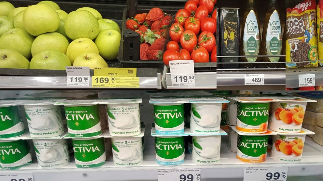 Zincir marketlerden örnek bir market alışverişi, sağlıklı beslenmenin maliyetini net şekilde gösteriyor: Coco Pops: 159,90 TL, zeytinyağı: 489,95 TL, ezine peyniri: 205 TL, probiyotik yoğurt: 99,50 TL, çilek (kg): 229,90 TL, elma (kg): 119,90 TL, salkım domates (kg): 139,90 TL, kuru meyveli fındıklı müsli: 117,75 TL, kuruyemişli granola 164,45 TL