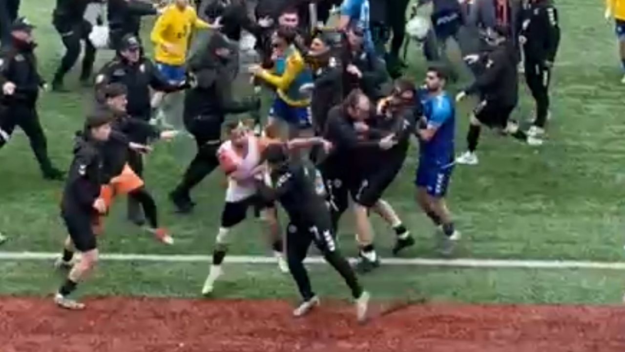 Murgul Spor bugün sahasında Rize Atletik Spor’u ağırladı. Karşılaşmanın ilk yarısı Rize Atletik Spor’un Enes Türüt ile bulduğu golle 1-0 üstünlüğü ile tamamlandı. Hakemin ilk yarıyı bitiren düdüğü çalmasıyla iki takım arasında yumruklu, tekmeli kavga başladı. Sahanın boks ringine döndüğü maçta tartışma dakikalarca sürücünce tarafları güvenlik güçleri güçlükle ayırdı. Kavga başladığı andan itibaren statta ‘Sevgili taraftar gurubu, lütfen sahaya girmiyoruz, sahaya yabancı madde atmıyoruz’ şeklinde anonslar yapıldı.