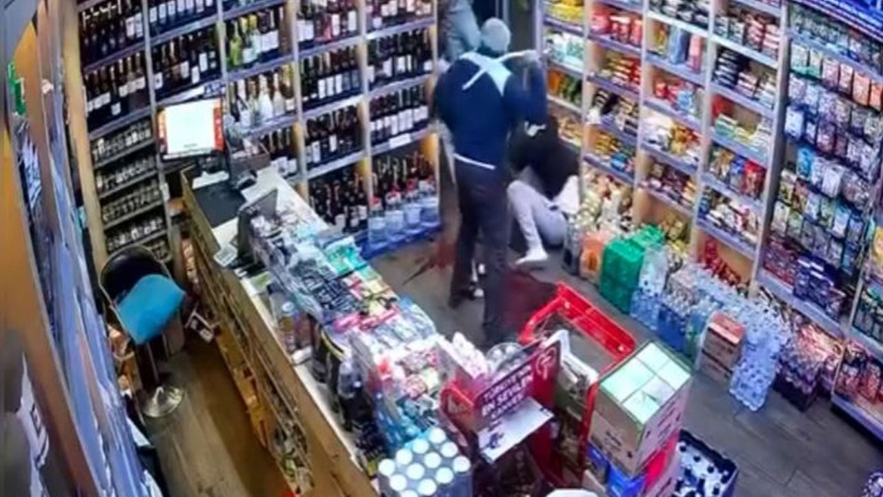 İş yeri sahibini sahte içki satmakla suçlayan kişi, dükkandaki bir başka kişi tarafından yumruklanırken küfretmeye devam edince iş yeri sahibi tarafından bir de sopayla darbedildi. Yaşananlar güvenlik kamerasına saniye saniye yansırken, tarafların olayla ilgili birbirlerine şikayetçi olmadığı öğrenildi