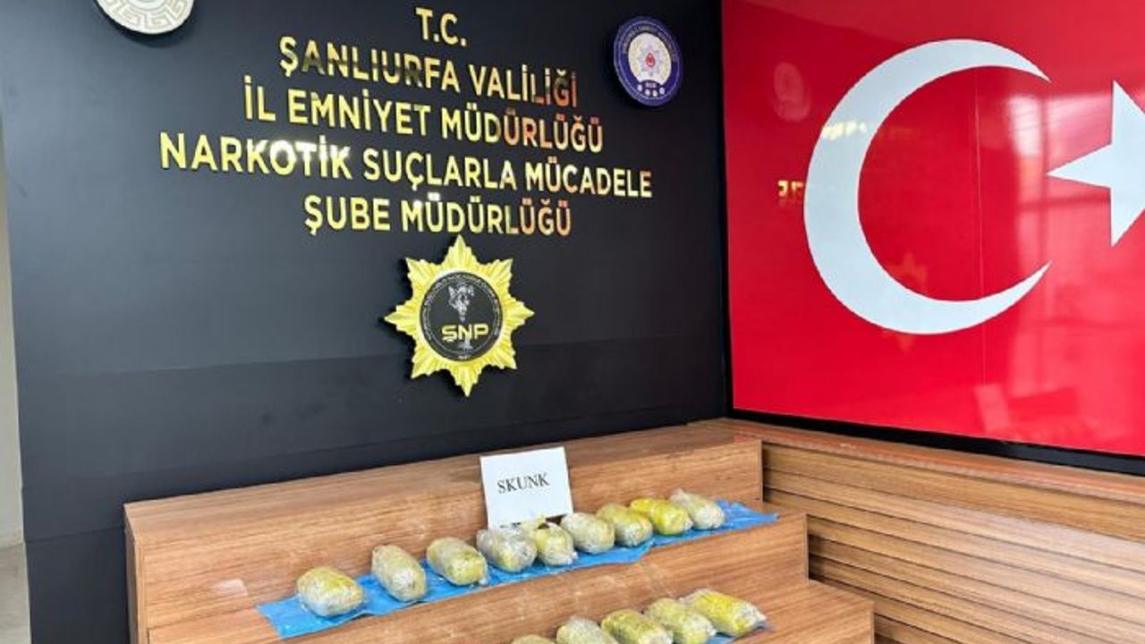 Edinilen bilgiye göre, Şanlıurfa İl Emniyet Müdürlüğü Narkotik Suçlarla Mücadele Şube Müdürlüğü ekipleri, durumundan şüphelendikleri bir aracı durdurdu. Araçta arama yapan ekipler, 16 paket halinde toplam 11 kilo 500 gram skunk maddesi ele geçirdi. Gözaltına alınan 1 kişi emniyete götürülürken. olayla ilgili başlatılan soruşturma devam ediyor.