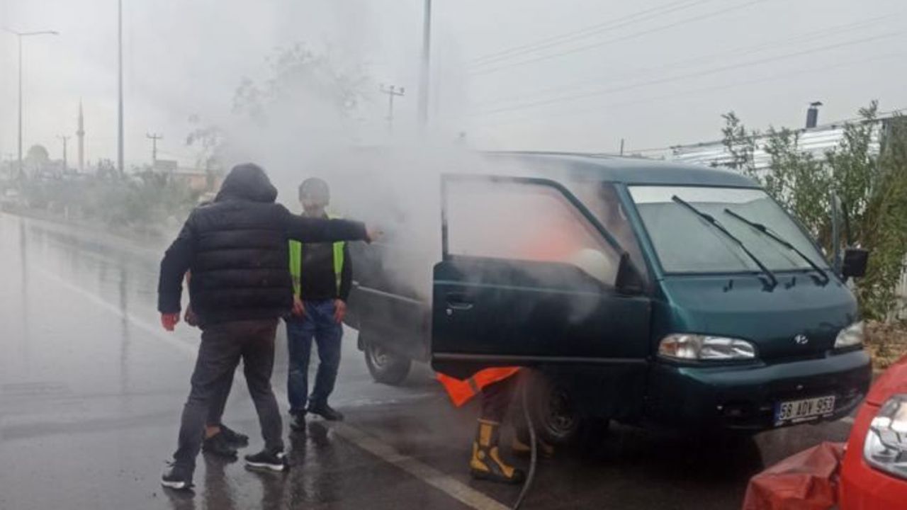 Olay, Mersin-Antalya D-400 karayolu üzerinde Talat Göktepe Çamlığı karşısında meydana geldi. Alınan bilgiye göre, etkili olan sağanak yağış esnasında 58 ADV 953 plakalı kapalı kasa kamyonetten duman çıkmaya başladı. Sürücünün aracı durdurduğu esnada, bir ihbardan dönen itfaiye ekibi dumanları görerek müdahalede bulundu. İtfaiye ekibinin müdahalesiyle araçtaki yangın söndürüldü.