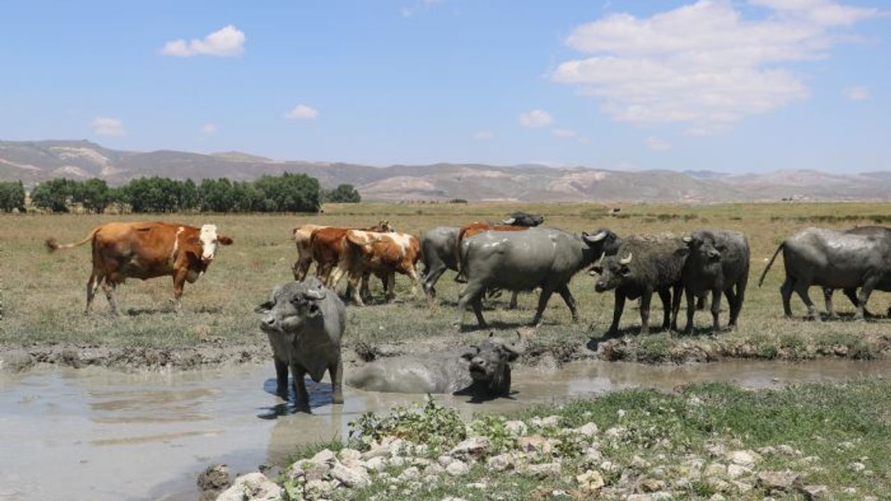 Sivas'ın Şarkışla ilçesine bağlı Merkezhüyük köyünde aşırı sıcaklara dayanamayan mandalar, günün yarısını çamur banyosu yaparak geçiriyor. Diğer büyükbaş hayvanlara göre derileri kalın olan mandalar koyu renkleri ile yaz aylarında sıcak havadan olumsuz etkileniyor. Kırsalda sabah erken saatlerde beslenen mandalar, çamur banyosu yaparak serinliyor. Vücutlarının tamamını çamura bulayan mandalar drone ile havadan görüntülendi.