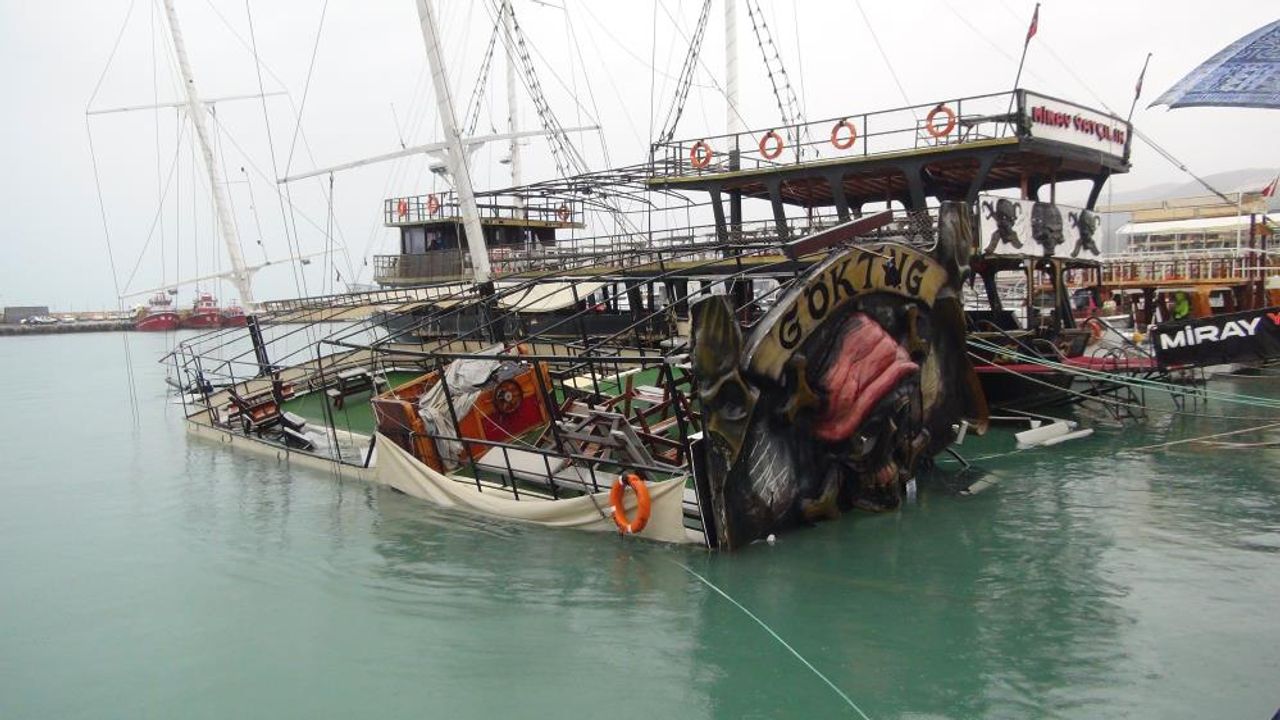 Silifke ilçesinde dün gece şiddetli yağış ve fırtına etkili oldu. Gece yarısı etkisini artıran şiddetli fırtına nedeniyle limanda bağlı bulunan, 130 yolcu kapasiteli ve yaklaşık 25 metre uzunluğundaki Göktuğ isimli gezi teknesi su alarak battı.