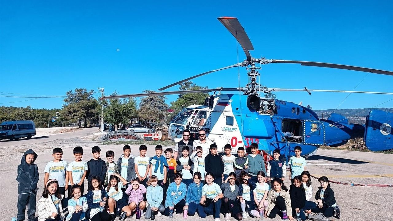 Silifke Gazipaşa İlkokulu’ndan öğrenciler, Çamdüzü Orman Deposunda konuşlu yangın söndürme helikopterini ziyaret ederek hem helikopteri hem de kullanılan teknik ekipmanları yakından görme fırsatı buldu.