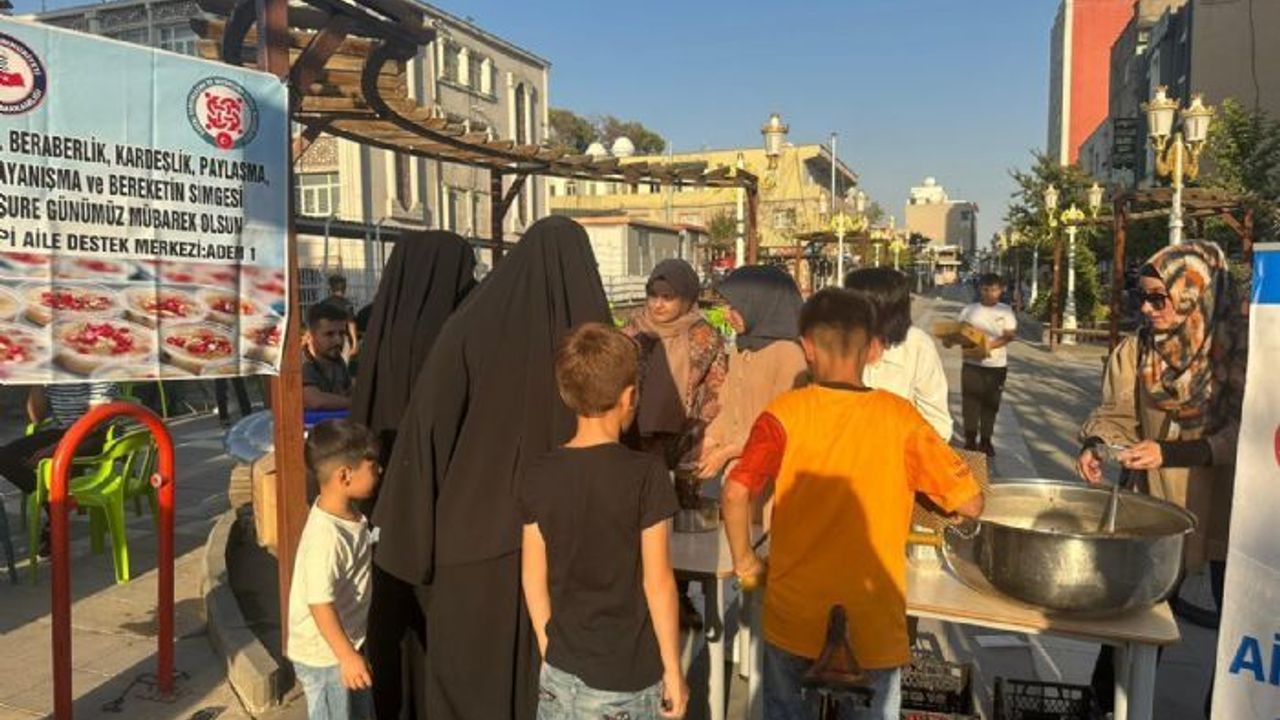 Silopi Kaymakamlığı Aile Destek Merkezi (ADEM-1) Muharrem Ayı'nın son gününde ilçenin en işlek noktası sanat sokağında aşure ikram etti.