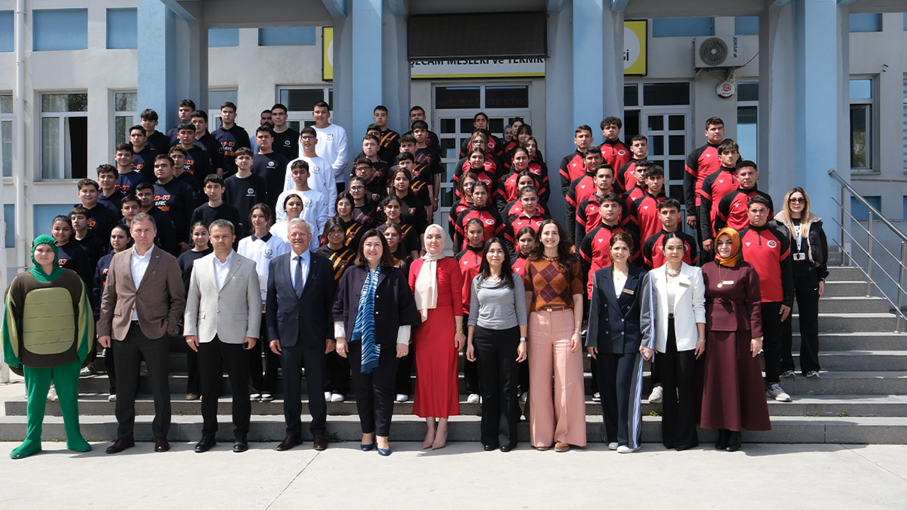 Heyet, okulda Başkan Sabri Tekli ile birlikte öğretmen ve öğrencilerle bir araya geldi. Öğrenciler, okulda yürütülen projeler ve elde ettikleri başarılar hakkında yöneticilere bilgi verdi. Ardından Model Fabrika’ya geçen heyet, sanayideki son teknolojik gelişmeleri yerinde inceledi.