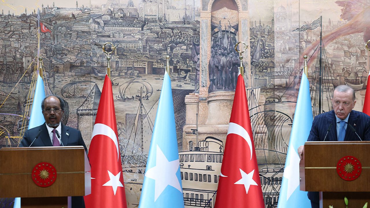Cumhurbaşkanı Recep Tayyip Erdoğan, Somali Cumhurbaşkanı Hasan Şeyh Mahmud ile Dolmabahçe Çalışma Ofisi’nde bir araya geldi. Toplantı sonrasında Somali Cumhurbaşkanı Hasan Şeyh Mahmud basın açıklaması yaptı.