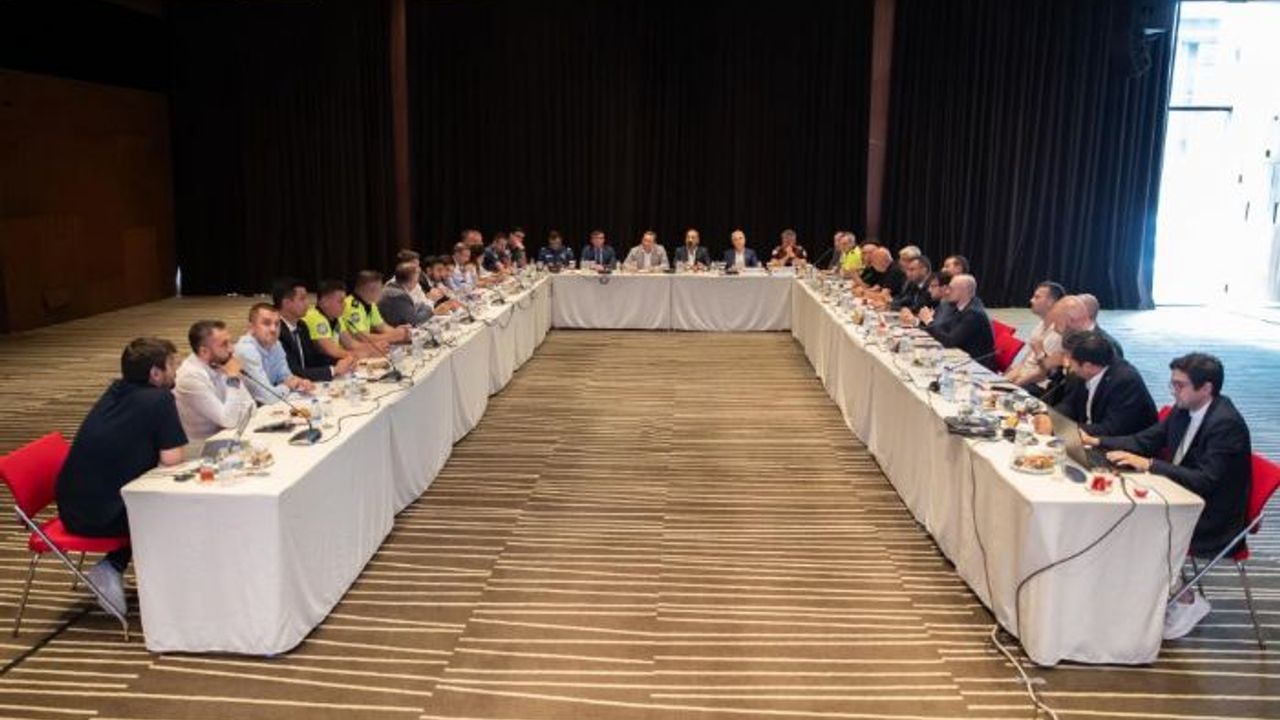 Hasan Doğan Milli Takımlar Kamp ve Eğitim Tesisleri'nde Türkiye Futbol Federasyonu Yönetim Kurulu Üyesi Mecnun Otyakmaz'ın başkanlığında yapılan toplantıya TFF Genel Sekreteri Abdullah Ayaz, Beşiktaş Asbaşkanı Mete Vardar, Galatasaray Genel Sekreteri Eray Yazgan, Atatürk Olimpiyat Stadı Müdürü İlker Avcı, İl Emniyet Müdürlüğü yetkilileri ve TFF görevlileri katıldı.