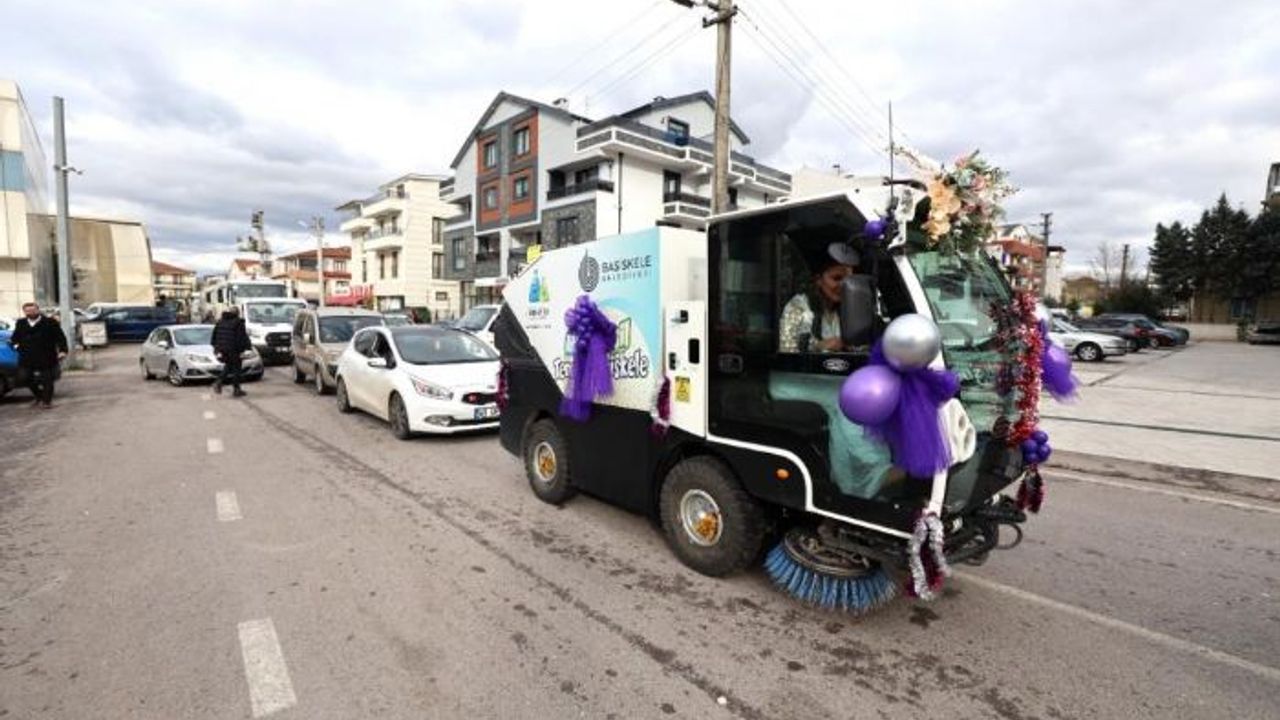 Başiskele Belediyesi Temizlik İşleri Müdürlüğü çalışanları Türkan Baylan ile Faik Çalık hayatlarını birleştirdi. Türkan Baylan, gelinliğiyle şoförü olduğu mini süpürge aracının direksiyonuna geçti.