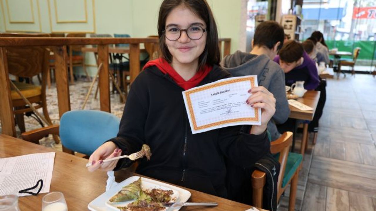 Taktir belgesi alıp tatlı yemeye gelen Mustafa Acar (13), "Sosyal medyadan bu kampanyayı gördüm ve sınıftaki arkadaşlarımla geldim. Böyle işletmelerin bizleri düşünmesi mutlu ediyor. Taktiri aldım, 'Adana bombası'nı kaptım" diye konuştu.