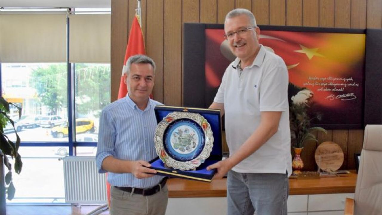 Başkan Ali Özkan, ziyaretin sonunda bundan sonraki çalışmalarında Tanrıverdi'ye başarılar dileyerek, plaket takdim etti.