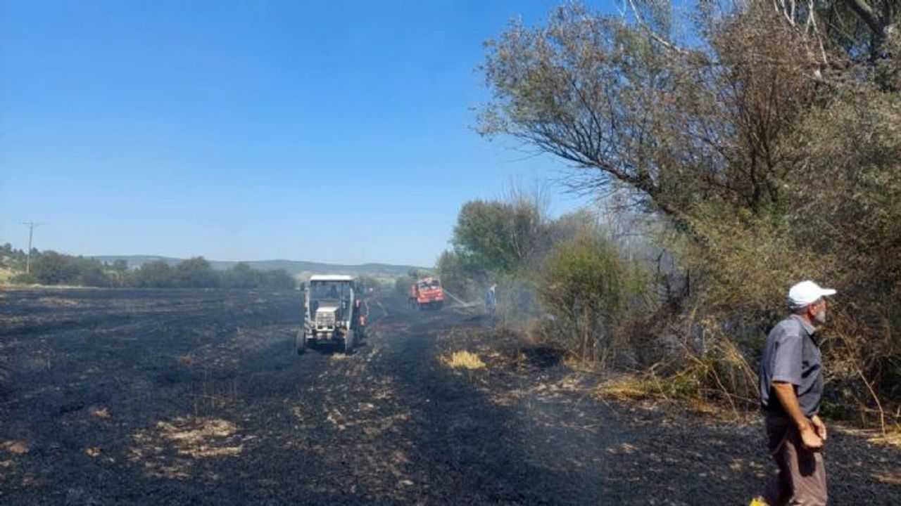 Tarla yangını ormana sıçramadan söndürüldü