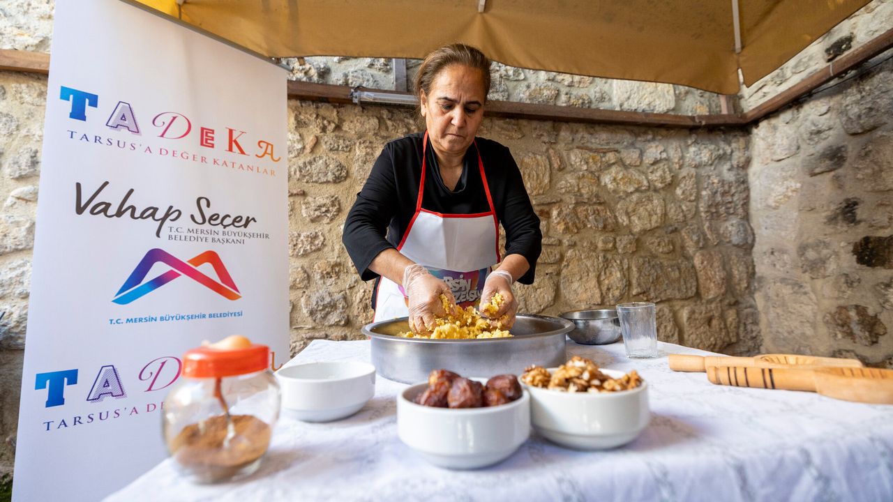 Binlerce yıllık köklü bir tarihe sahip olan Tarsus’ta, mutfak kültüründe sıklıkla yapılan yüksük çorbası, Tatar çorbası ve mamül kurabiyesi, TADEKA Binası bahçesinde kurulan stantlarda usta ellerde belli tarifler ölçüsünde hazırlandı. Mersin Büyükşehir Belediyesi Kültür, Sanat ve Sosyal İşler Dairesi Başkanlığı bünyesindeki Tarsus’a Değer Katanlar Kurulu’nda (TADEKA), yöresel değerlerin geleceğe taşınması adına çalışmalar devam ediyor. TADEKA Turizm ve Gastronomi Kurulu’nun, eşsiz ve köklü bir tarihe sahip olan Tarsus’a özgü yemeklerin belli tarifler içerisinde yapılması ve gelecek nesillere aktarılması adına başlattığı ‘Tarsusi Yöresel Yemek Hikayeleri’ projesine yeni bir halka daha eklendi.