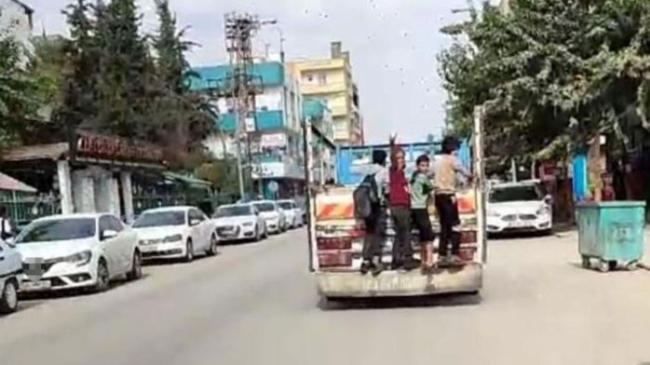 Edinilen bilgiye göre olay, Akçakale ilçesi İstasyon Caddesi'nde seyir halindeki kamyonetin kasasına tutunan 4 çocuk, tehlikeli bir şekilde yolculuk yaptı. Bir motosiklet sürücüsü tarafından cep telefonu kamerasıyla çekilen görüntülerde, çocukların seyir halindeyken ellerini bırakıp ayaklarını yere değdirmeye çalıştıkları gözlendi.