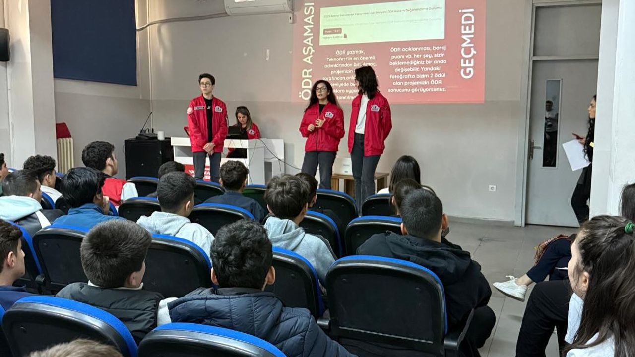 Teknofest Deneyim Paylaşımı – Genç Ar-Ge Akran Eğitimi” kapsamında gerçekleştirilen etkinliklerde öğrenciler; Teknofest başvuru süreci, takım çalışması, proje geliştirme aşamaları ve yarışma sürecinde edindikleri tecrübeleri arkadaşlarıyla paylaştı. Program sayesinde gençler, bilim ve teknoloji alanında proje üretmeye teşvik edilirken, Ar-Ge kültürüne dair önemli kazanımlar elde etti. Bu kapsamda akran eğitimi çalışmaları şu okullarda gerçekleştirildi: 75. Yıl Fen Lisesi, Çamlıbel Kız Mesleki ve Teknik Anadolu Lisesi, Fatma Zehra Kız Anadolu İmam Hatip Lisesi, Mersin Anadolu İmam Hatip Lisesi, Akdeniz Borsa İstanbul Mesleki ve Teknik Anadolu Lisesi, Abdülkadir Perşembe Vakfı Mesleki ve Teknik Anadolu Lisesi, Özel Şişecam Mesleki ve Teknik Anadolu Lisesi, İsa Öner Anadolu Lisesi, Mine Güneşli Anadolu İmam Hatip Lisesi, Gerçekleştirilen etkinliklerde öğrenciler, deneyimlerini paylaşarak akranlarına ilham oldu. Çalışmanın hayata geçirilmesinde emeği geçen Arkedaşlar Takımı ile Akdeniz İlçe Millî Eğitim Müdürlüğü Ar-Ge Birimi’ne katkı ve desteklerinden dolayı teşekkür edildi.