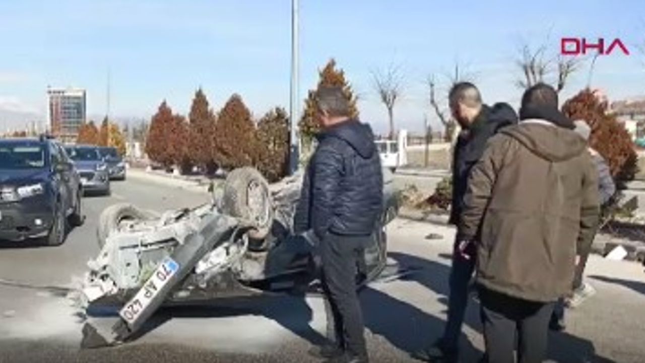 Kaza, saat 12.30 sıralarında Tabduk Emre Mahallesi Prof. Dr. Halil Cin Caddesi'nde meydana geldi. Ahmet Hakan Yanık, yönetimindeki 70 AP 420 plakalı otomobille seyir halindeyken, cep telefonuyla annesini aramak istedi. Bu sırada kontrolün kaybolduğu otomobil, refüje çarpıp ağaçları devirdikten sonra takla atarak ters döndü. Kazada otomobil hurdaya döndü. İhbar üzerine bölgeye polis ve sağlık ekipleri sevk edildi. Yara almadığını belirterek sağlık görevlilerinin müdahalesini kabul etmeyen Yanık, "Tam annemi arayacaktım, telefona bakarken bir tak sesi geldi. Araba yan dönmeye başlayınca, ben açık camdan kendimi dışarıya attım. Tam araba yan yattı, ben kendimi dışarıya toprağa attım. Ters döndüğünde içinde değildim. Allah'a şükür bende bir şey yok" dedi. Ters dönen araç ise vatandaşların müdahalesiyle düzeltilirken, kazaya ilişkin inceleme sürüyor.