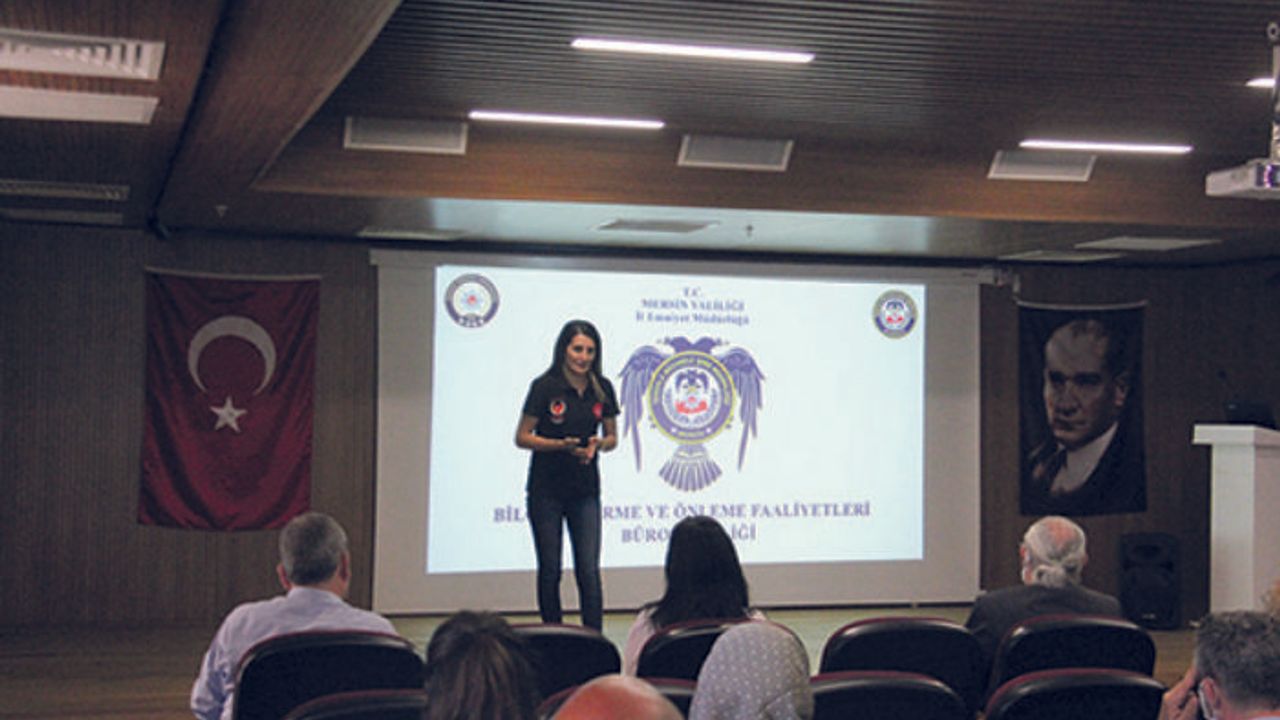'Terörü Hep Birlikte Durdurabiliriz 2022' projesi ile ben yerine 'biz' bilinci oluşturmak, tek çatı altında birleşmek, şiddet, intihar, eylemleri gibi yaşanabilecek terör olaylarının önlenebilmesi, çocuk ve gençlerin sosyalleşmesi, birlik, beraberlik ve kardeşlik ortamının oluşturulması, çocukların terör örgütlerinin birer maşası olmalarını engelleyerek, kendilerini bağımsız ifade etmelerini sağlamak ve milli bir şuur oluşturmak için Sahil Güvenlik Komutanlığı, Tarım İl Müdürlüğü, Silifke Huzurevi, Kültür Turizm İl Müdürlüğü ve Tarsus Aile Sosyal Hizmetler İlçe Müdürlüğü'nde görev yapan personellere yönelik Bilgilendirme ve Önleme Faaliyetleri (BÖF) kapsamında konferanslar yapıldı. (Haber Merkezi)