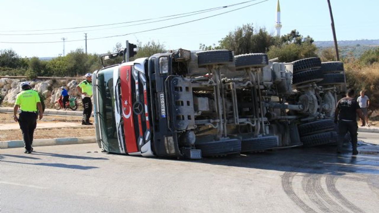 Kaza, Mersin-Antalya D-400 karayolunda Erdemli Kumkuyu Liman kavşağında meydana geldi. Alınan bilgiye göre, Ö.N. idaresindeki 33 CRS 93 plakalı tır ile kavşağa giren sürücüsünün ismi öğrenilemeyen 33 ACG 391 plakalı beton mikseri çarpıştı. Çarpışmanın etkisi ile beton mikseri kavşakta devrilirken sürücüsü yaralandı. Kaza yerine itfaiye, polis ve sağlık ekipleri sevk edildi. Araçtan çıkarılan yaralı sürücü ambulansla ilçe devlet hastanesine kaldırıldı. Kaza ile ilgili soruşturma sürüyor. (İHA)
