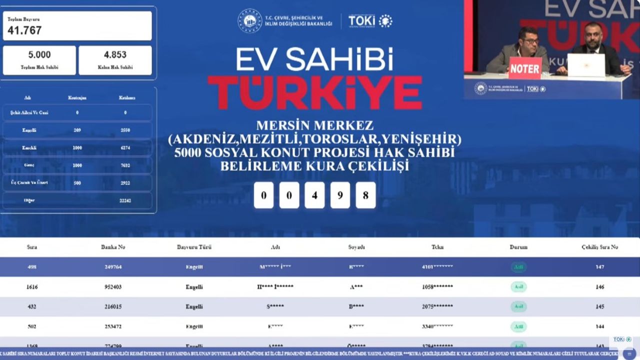 Çevre ve Şehircilik Bakan Yardımcısı Hasan Suver, bugün kurada ismi çıkmayanların üzülmemesini, Türkiye'de evi olmayan hiçbir vatandaş bırakmayacaklarını söyledi.