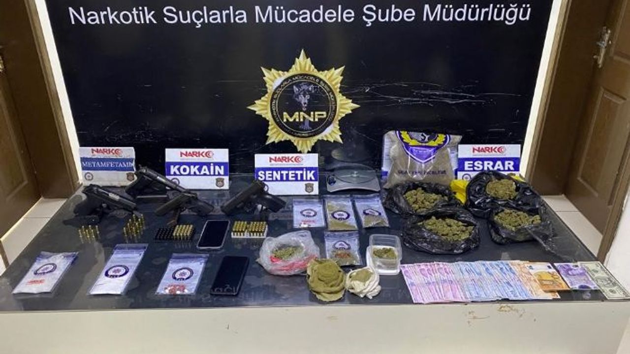 İl Emniyet Müdürlüğü Narkotik Suçlarla Mücadele Şube Müdürlüğü ekiplerince, uyuşturucu madde ticareti yapan şüphelilerin belirlenmesine yönelik 2 ay süren fiziki ve teknik takip sonucunda 'torbacı' tabir edilen 31 şüpheli tespit edildi. Elde edilen bilgiler istikametinde bu sabah belirlenen adreslere özel harekat ve dron desteğiyle şafak operasyonu düzenleyen ekipler, 21 şüpheliyi gözaltına aldı. Adreslerde yapılan aramalarda 473 gram kubar esrar, 105 gram toz esrar, 3 gram bonzai, 55 gram metamfetamin, 40 adet sentetik hap, 4 ruhsatsız tabanca, 85 dolu tabanca fişeği, 7 bin 300 lira para, 20 pound, 50 euro ve 50 dolar ele geçirildi.