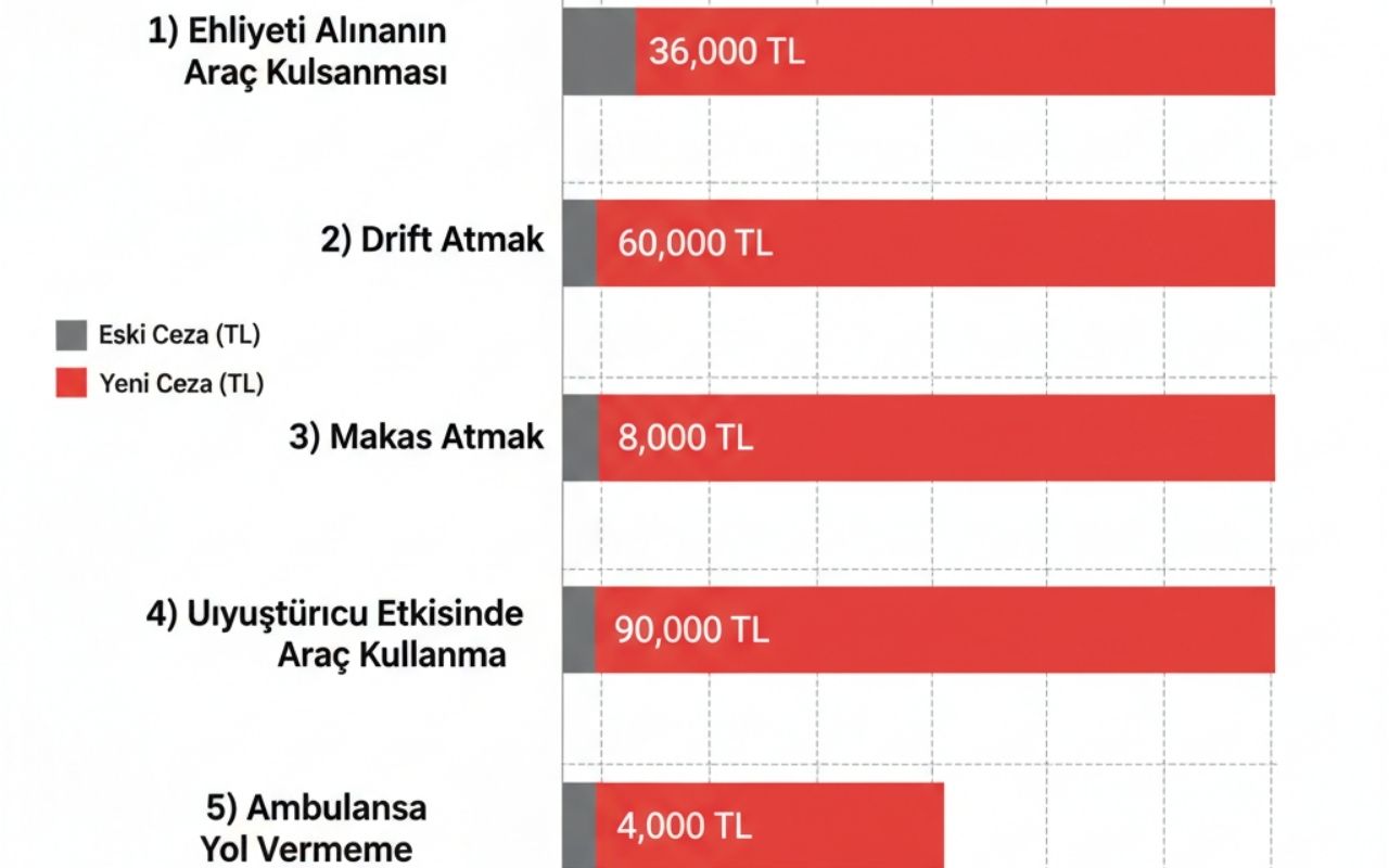 Sürücü belgesi olmadan araç kullanmanın cezası 40.000 TL'ye, ehliyetine el konulmuş birinin araç kullanmasının cezası ise 200.000 TL'ye çıkarılmıştır.