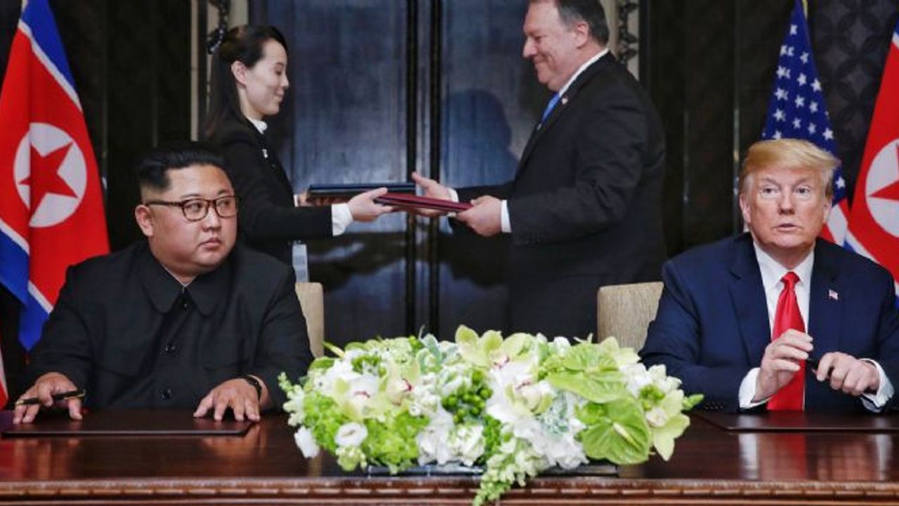 İlk görev döneminde Kuzey Kore ile diplomasi trafiği başlatan Trump, Kim ile ilk görüşmesini 12 Haziran 2018'de Singapur'da gerçekleştirmişti. İkili, 26-27 Şubat 2019'da ise Vietnam'da bir araya gelmişti. Trump ve Kim, son görüşmelerini 30 Haziran 2019'da Koreler arasındaki silahsızlandırılmış bölgede yapmıştı. Sembolik olarak Kuzey Kore topraklarına geçen Trump, ülkeye ayak basan görevdeki ilk ABD Başkanı olmuştu. Buna rağmen Kore'nin nükleer silahlardan arındırılması ve ilişkilerin normalleşmesine yönelik müzakerelerden sonuç alınamamıştı. Washington - Pyongyang arasındaki gerginlik ABD Başkanı Joe Biden'ın döneminde yeniden zirveye ulaşmıştı.