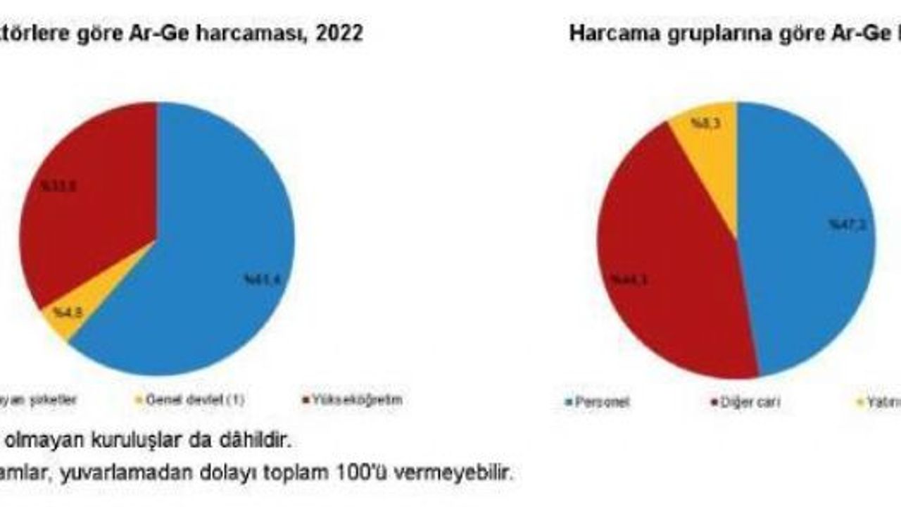 Ar-Ge harcamalarında, mali ve mali olmayan şirketler yüzde 61,4 ile en büyük paya sahip olurken, bunu yüzde 33,8 ile yükseköğretim takip etti. Kar amacı olmayan kuruluşlar tarafından yapılan Ar-Ge harcamalarının da dahil olduğu genel devlet Ar-Ge harcamalarının toplam Ar-Ge harcamaları içindeki payı ise yüzde 4,8 oldu. Ar-Ge harcamaları içerisinde personel harcamaları yüzde 47,3 ile en büyük harcama kalemini oluşturdu.