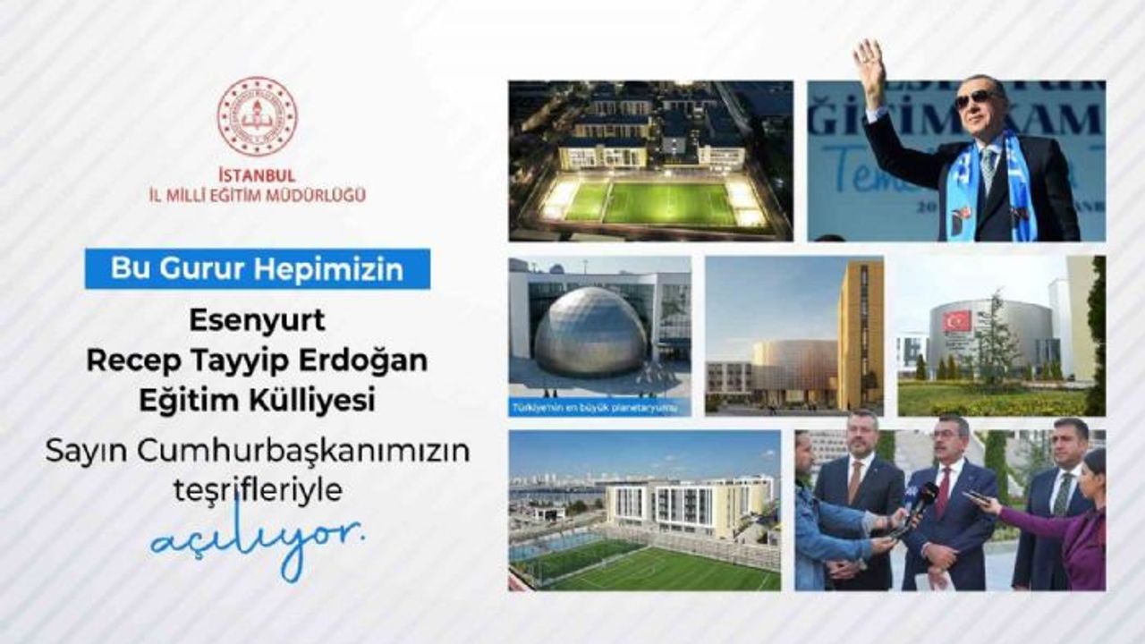 İstanbul İl Milli Eğitim Müdürü Murat Mücahit Yentür, yaptığı açıklamada Esenyurt Eğitim Külliyesi'nin eğitimin her alanında donanımlı bireyler yetiştirilmesi adına önemli bir yatırım olduğunu vurgulayarak, "Eğitimde fiziki altyapının güçlendirilmesi, çağın gerekliliklerine uygun öğrenme ortamlarının oluşturulması büyük önem taşıyor. Esenyurt Recep Tayyip Erdoğan Eğitim Külliyesi, öğrencilerimizin akademik başarısının yanı sıra bilim, sanat ve spor alanlarında da gelişimini destekleyen bir merkez olacak. Burada milli ve manevi değerlerle yetişecek gençlerimiz, ülkemizin bilim ve teknoloji yolculuğuna katkı sunacak, geleceğin güçlü Türkiye'sini inşa edecekler. Sayın Cumhurbaşkanımızın öncülüğünde eğitime yapılan bu dev yatırım, sadece bugünün değil, yarının da güçlü Türkiye'sini inşa edecek nesilleri yetiştirmek için atılmış tarihi bir adımdır. Türkiye Yüzyılı'na yön verecek ilim, irfan ve hikmet sahibi gençler, bu eğitim külliyesinde yetişecektir" dedi.